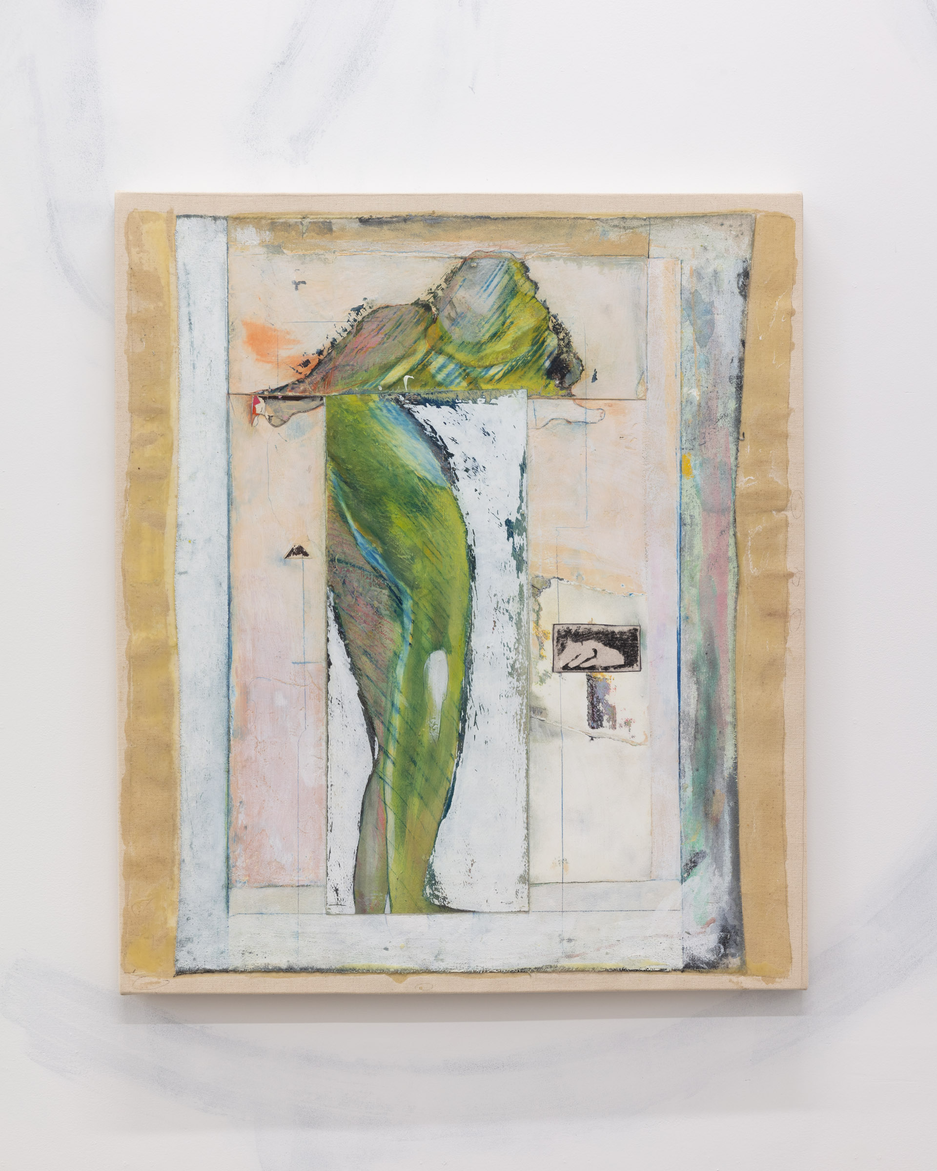 Verso, pencil crayon, oil paint, acrylic and wax on paper and canvas, 2021