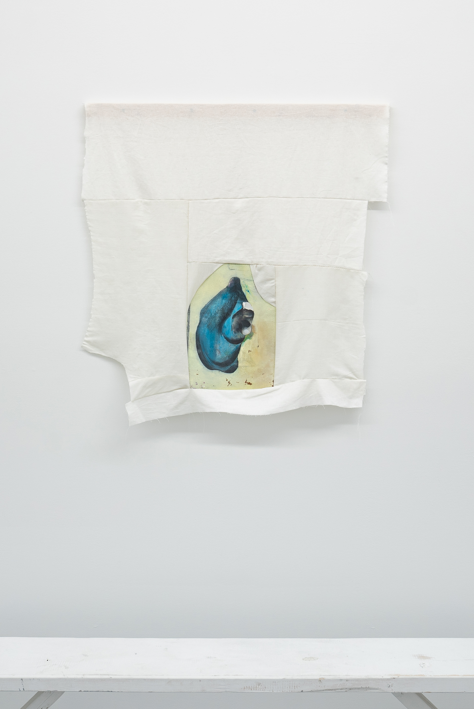 Fragment 2 (Loose hands), 2022, pencil crayon, acrylic, paper, and grout on wood panel, 24 x 20”